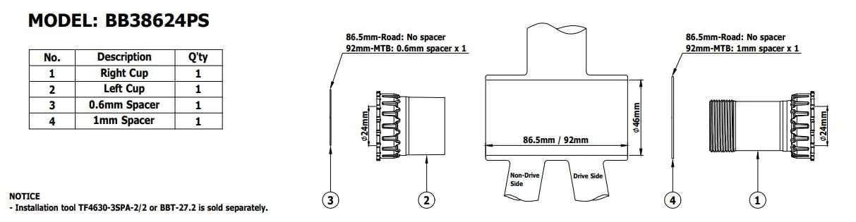 | Krank type | PressFit 30 (PF30) |